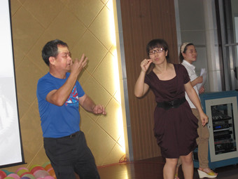 圖7:“四人1腳” 圖8:心有靈犀一點(diǎn)通,比劃猜