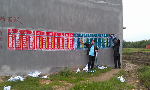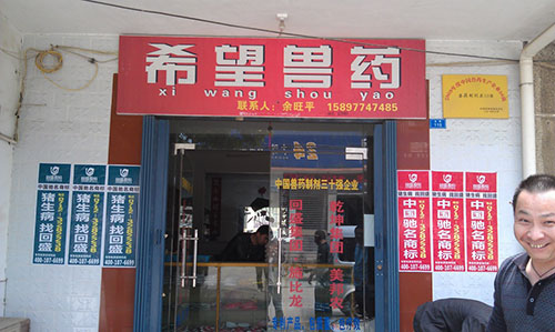 不知不覺一路貼到陳河鎮(zhèn)上,大家加快了進度,沒多久,古鎮(zhèn)主街道兩側的電線桿上就貼滿了回盛的品牌宣傳畫。我們驚喜的發(fā)現,鎮(zhèn)上一家希望獸藥店,在店門口醒目的位置還打出了“回盛股份新華星動保連鎖獸藥應城銷量第一”的標語。老板談起銷售業(yè)績一臉歡喜,看得出來回盛旗下的產品在鎮(zhèn)上比較暢銷,市場占有率很高。