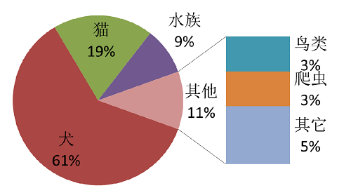 全球養(yǎng)寵家庭占比為:美國65%、德國36%、日本28%、中國6%。
