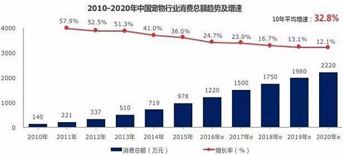 數(shù)據(jù)來源:2014年之前數(shù)據(jù)參考中國產(chǎn)業(yè)信息網(wǎng)發(fā)布的《2016年中國寵物行業(yè)發(fā)展現(xiàn)狀分析》,2015年之后數(shù)據(jù)為艾瑞預(yù)測數(shù)據(jù)。