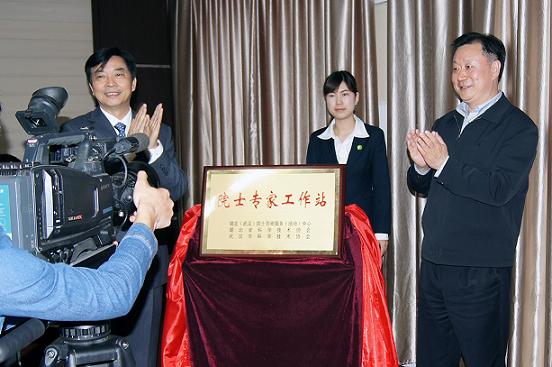 湖北省科協(xié)主席、黨組書記夏航(左)、武漢市副市長(zhǎng)邢早忠(右))為工作站揭牌